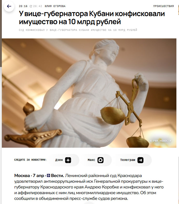 Прямые и непосредственные начальники господина Коробки, поди, ничего-то и не знали. А до последнего момента даже и не догадывались. Всё один-одинешенек хапал, ни с кем не делился. Ни в Краснодаре, ни в Москве.