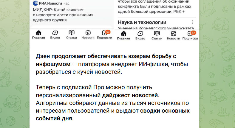Так называемый «искусственный интеллект» берётся сформировать для каждого новостную повестку. Потому что нечего листать информационные ленты, ковыряться на сайтах, сравнивать — жуйте, что дают.